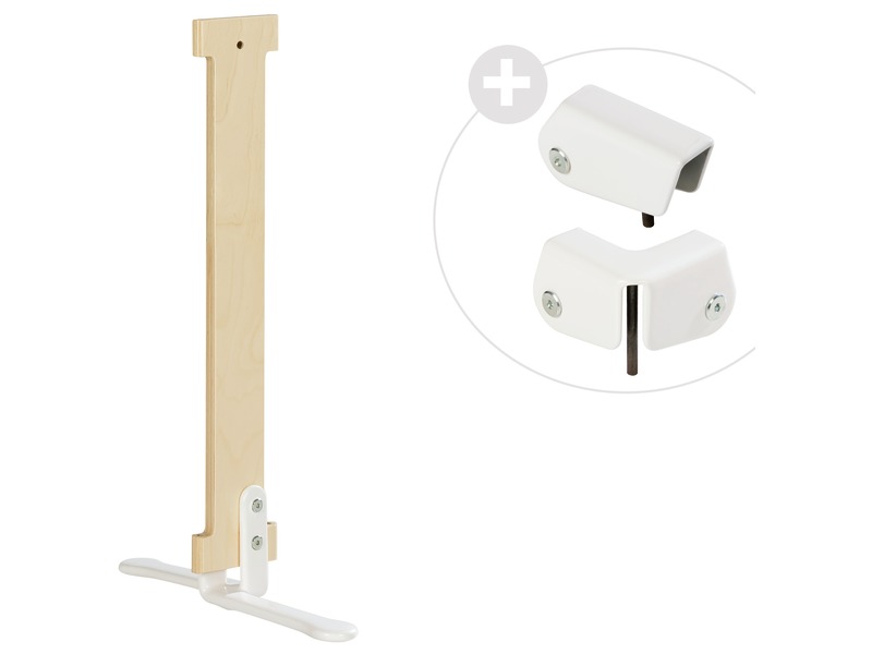 Colour NATURAL - L: 11 cm - W: 41.5 cm - H: 64 cm. - Made from Varnished PLYWOOD (connector) and METAL with non-slip and impact-resistant coating (fixings and feet). - Consists of 1 top connector, 1 foot and 1 right-angle fixed fixing - Washable with a sponge.