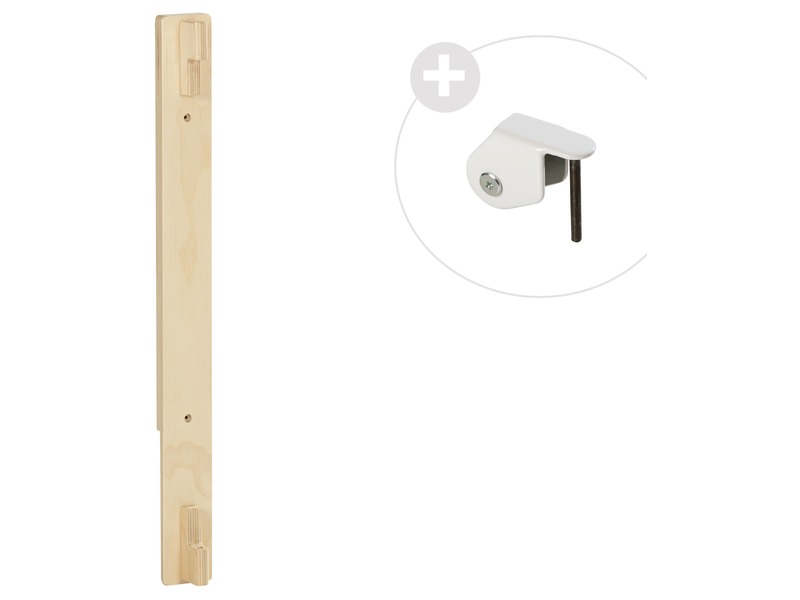 Colour NATURAL - L: 6 cm - W: 5 cm - H: 61 cm. - Made from Varnished PLYWOOD (connector) and METAL with non-slip and impact-resistant coating (fixings and feet). - Consists of 1 wall connector and 1 hinged fixing. - Washable with a sponge.