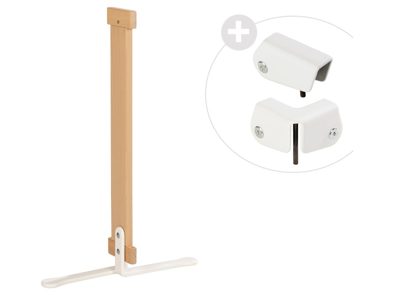 Colour NATURAL - L: 11 cm - W: 41.5 cm - H: 64 cm. - Made from SOLID BEECH (connector) and METAL with non-slip and impact-resistant coating (foot and fixings). - Consists of 1 single connector, 1 foot and 1 right-angle fixed fixing. - Washable with a sponge.