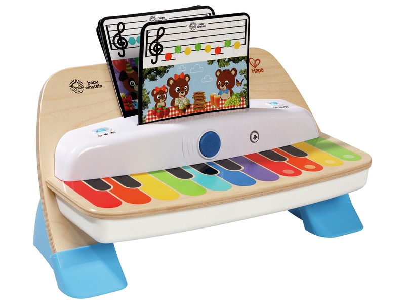 Colour various - L: 35 cm - W: 18 cm - H: 17.5 cm. - Made from WOOD and PLASTIC. - Consists of 1 piano and 5 double-sided scores. - Washable : disinfectant on the surface.