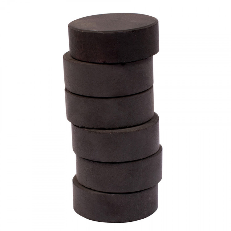 Antal: 6 st; Mått: Ø 4,4 cm, tjocklek: 1,6 cm; Material: Vattenfärg; Färg: Svart