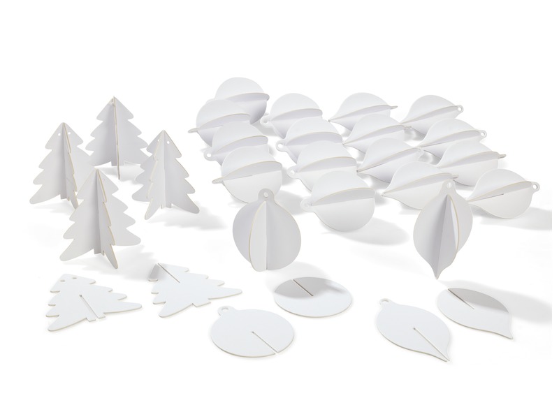 Colour: WHITE - L: 8.2 cm - W: 7 cm. - Consists of: 10 round baubles, 10 oval baubles and 5 Christmas trees. - Made from CARDBOARD.