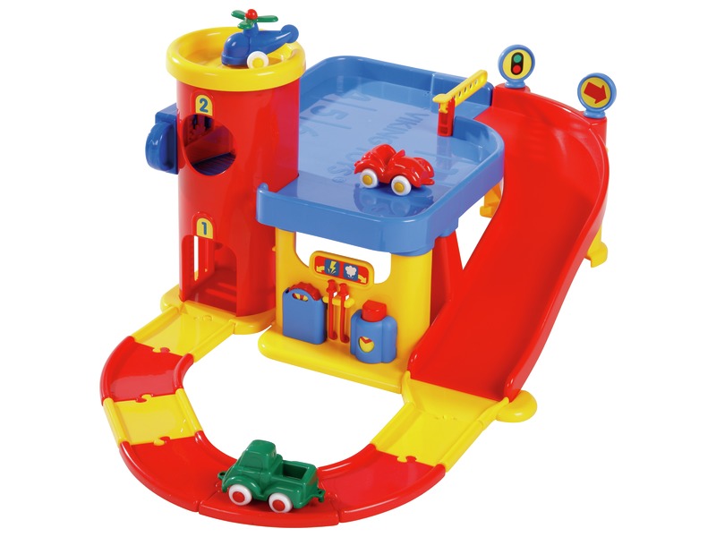 Colour: various - 1 garage, 2 cars, 1 helicopter and 7 road pieces. - Consists of: L: 68.5 cm - W: 41 cm - H: 26.5 cm. - Washable Dishwasher safe. - Made from PLASTIC.